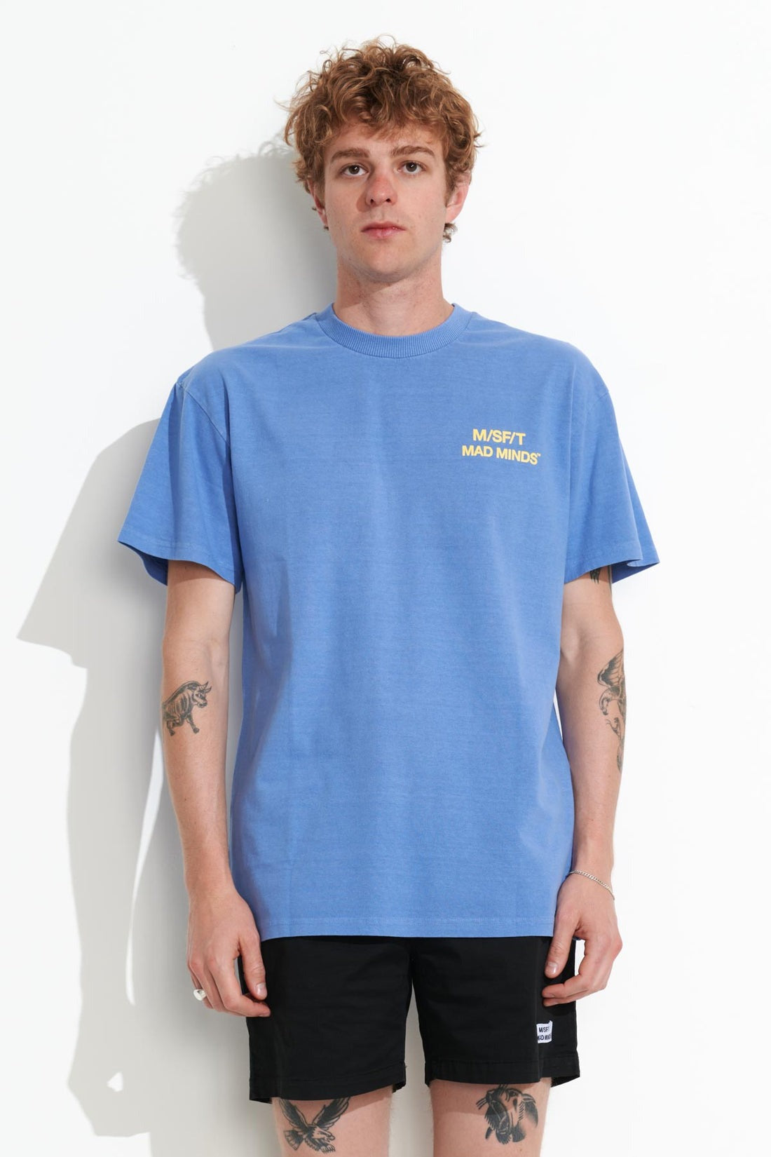Misfit 'Supercorporate 3.0 SS Tee' in Pigment Ultramarine features left chest print. Constructed from 50% Cotton Jersey & 50% Recycled Cotton in our regular tee fit. Finished with a rib knit neck band, internal back neck & premium trims.