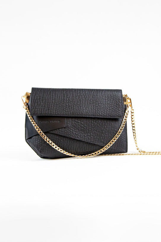 The front is adorned with a patch of leather with debossed lettering, adding a distinctive Thing Thing touch