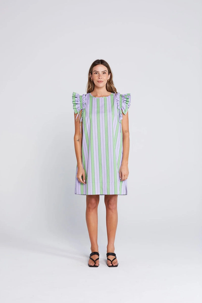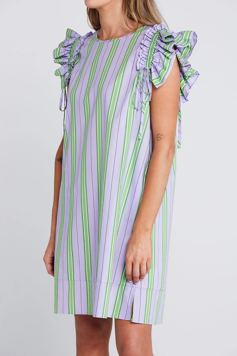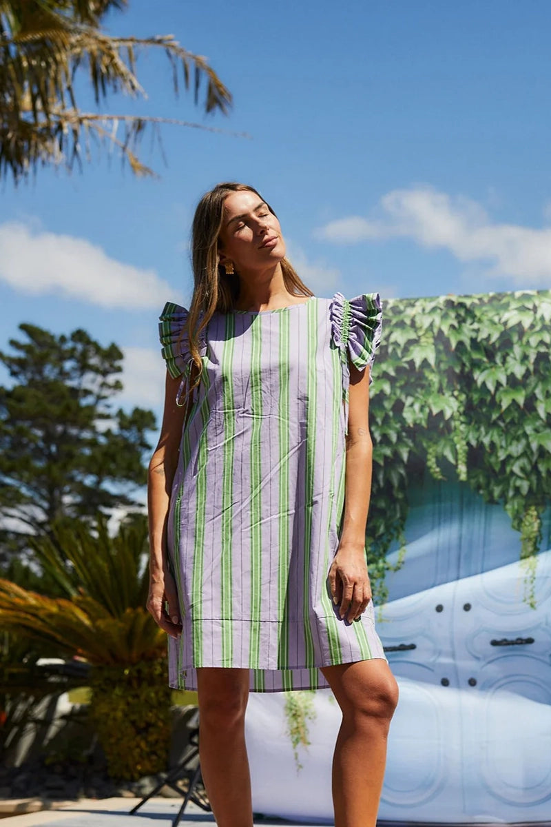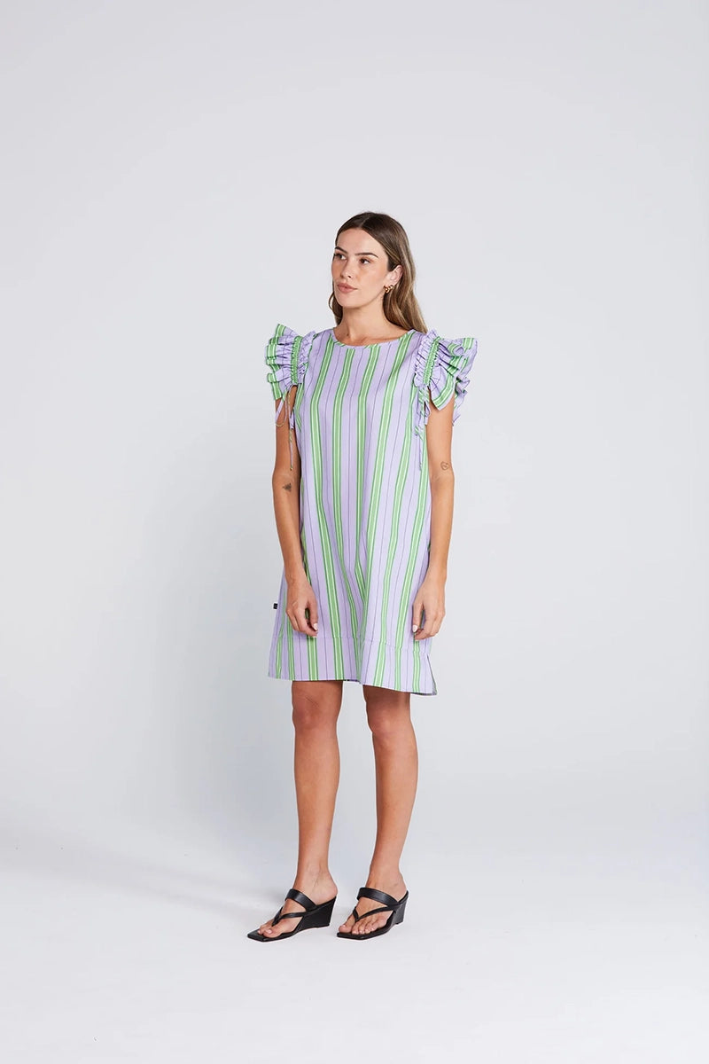 Tiesy-Ties! Introducing the Tiesy Dress, featuring frills on the shoulders and tie bows for added detail. Thing Things regular length with the tie in the back to complete the look.
