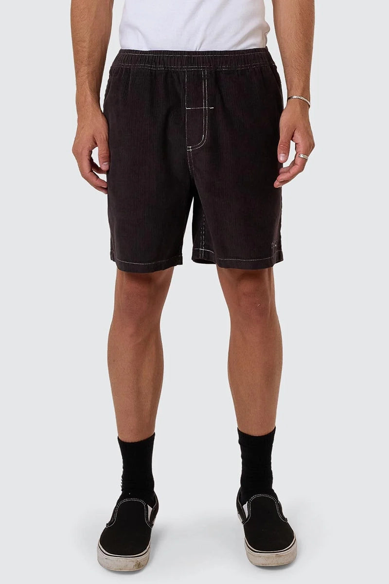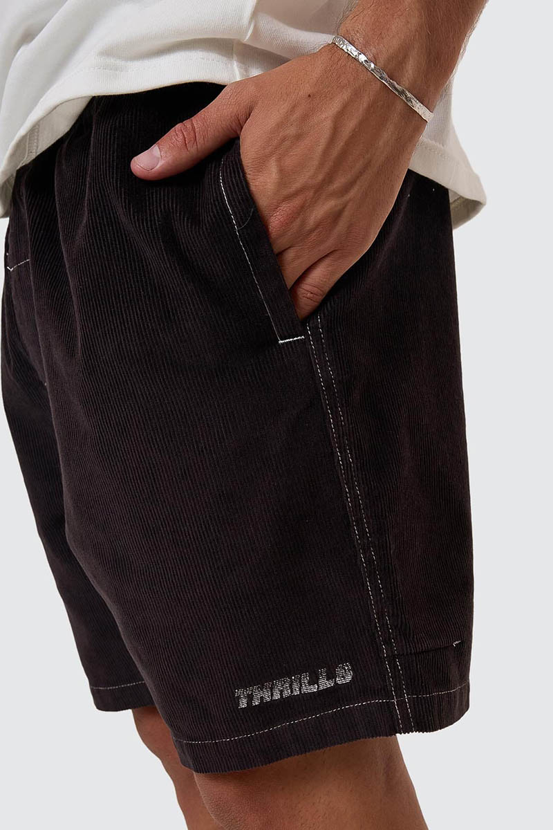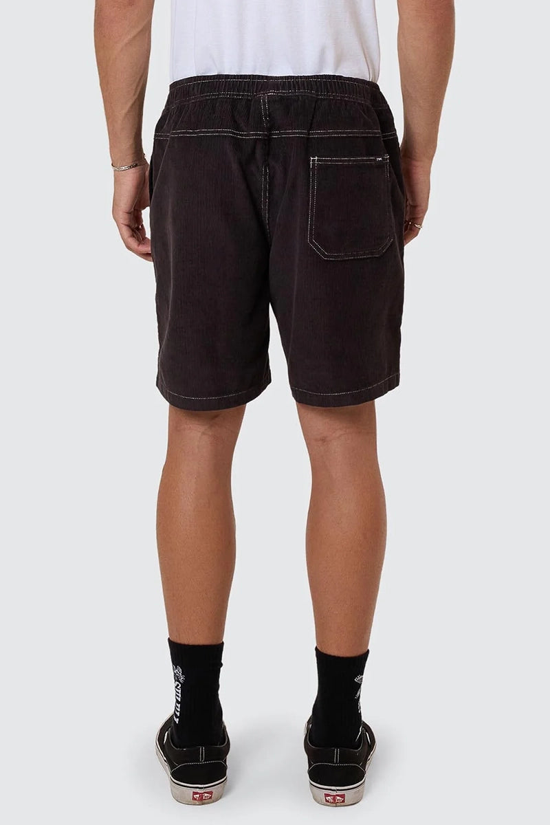 When cord is done right, you get the Anarchy In Paradise Cord Volley in Dark Charcoal. Soft on the touch but sharp in the street, these vintage denim shorts are crafted from durable cotton cord, bringing texture and chaos to your everyday men's streetwear Australia style. With an elastic waist, loose legs, and hem detailing, these casual cotton shorts are designed for movement and made to pair with men's muscle tees for a laidback look or men's basic tees to keep it clean and minimal.