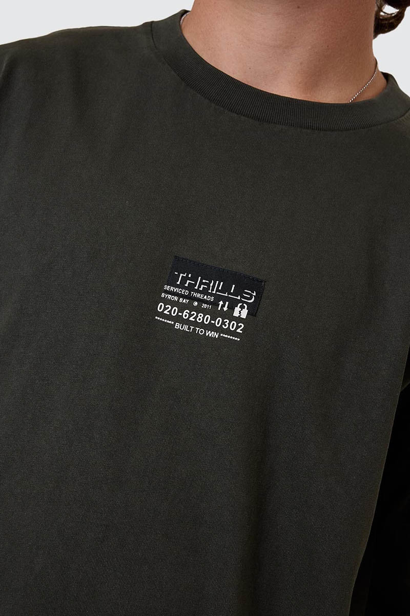 No fluff, just form, the Built To Win Oversize Fit Tee in Oil Green delivers clean branding and a structured, relaxed fit tee silhouette. Made from heavyweight cotton jersey, it easily holds shape like a champ without compromising comfort. A moody, earthy alternative to your basic black oversized tee, this Thrills tee is soft and gritty, featuring a ribbed crew neckline and dropped shoulders for a laidback vibe. Ideal for layering, lounging, or leading the charge, this favourite pick from our men's streetwear Australia staples is all about minimal talk and maximum presence.