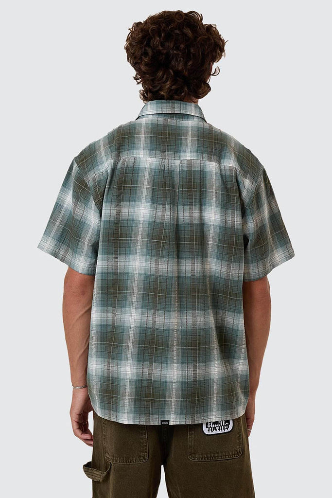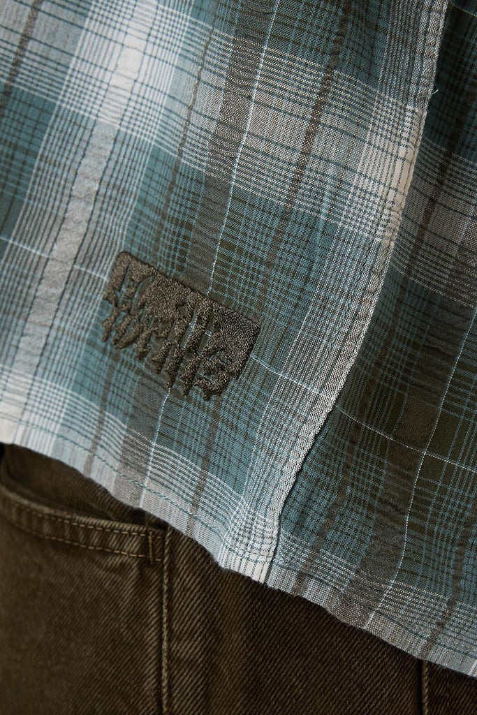 Paying homage to the punk heritage of Thrills Cycles, the Cheap Thrills Check Short Sleeve Cropped Shirt in Tarmac reinvents the classic with a new iconic colourway and a seersucker twist. Made from 100% cotton yarn dye fabric, this men's short sleeve shirt features a cropped hem, bold plaid pattern, and button-up front for easy layering. Whether you're pairing it with casual cotton shorts, vintage denim shorts, or throwing it over men's tees, it nails that offbeat men's streetwear Australia energy. Boxy, breezy, and cut for versatile wear.