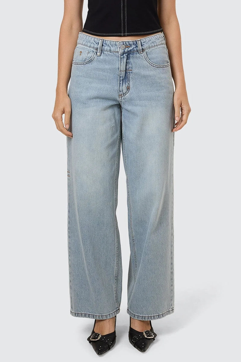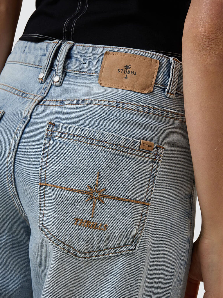 Feel-good denim with throwback attitude, the Dopamine Billie Low Jean in Dusk transforms your timeless favourites into fresh Australian women's clothing must-haves. Made from premium cotton denim, these relaxed-fit pants sit low on the hips with a loose leg, classic 5-pocket styling and intricate embroidery details. Part of the iconic Thrills pants range, this one's all about ease, comfort, and street-ready style. Pair with your favourite 2000s vintage tees for an effortless, laidback look.