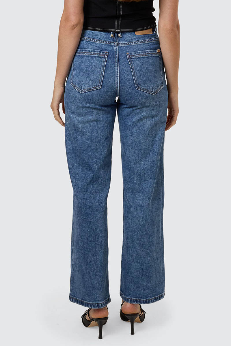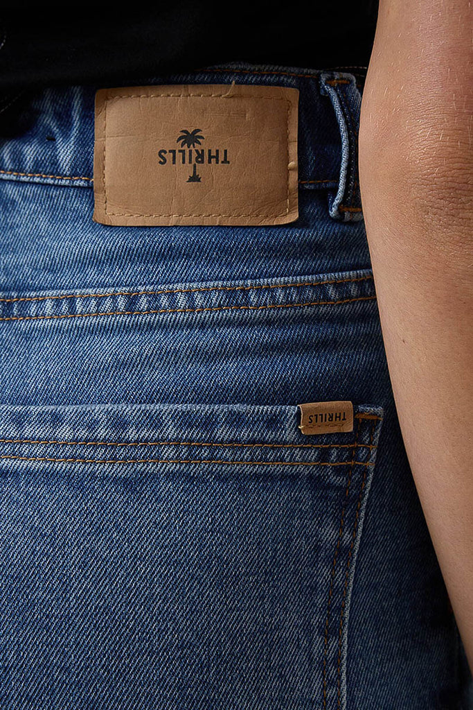 Upgrade your denim game with the Holly Stretch Jean in Stoned Blues. Designed with a flattering high-rise waist and subtle flare, these relaxed-fit pants hug through the hips before opening into a soft, wide leg. Made from premium cotton denim with a touch of stretch, these Thrills pants are comfy, structured, and ready for everyday wear. Finished in a classic vintage wash with a 5-pocket styling, they're your new go-to cotton casual pants. From the office to the streets, this go-to piece from our spring Australian women's clothing selection can handle it all.
