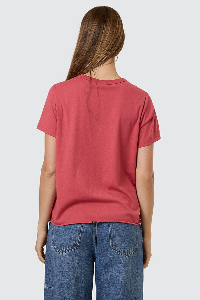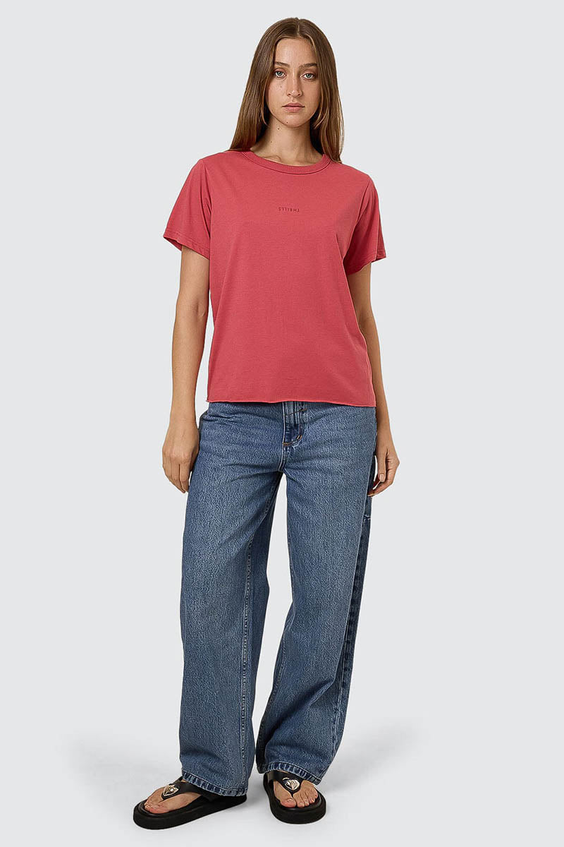 Meet the Minimal Thrills Relaxed Tee in Redwood, keeping things simple and sharp with its clean lines and Redwood tones. Made from breathable cotton jersey, this relaxed fit tee is soft, lightweight, and cut to fall just right at the high hip. Finished with a subtle logo hit on the chest, this organic cotton t-shirt delivers a low-key vintage graphic tee feel without going overboard. Ideal for off-duty days, this is a year-round staple in Australian women's clothing, perfect for pairing with your favourite denim jeans or cargo shorts.