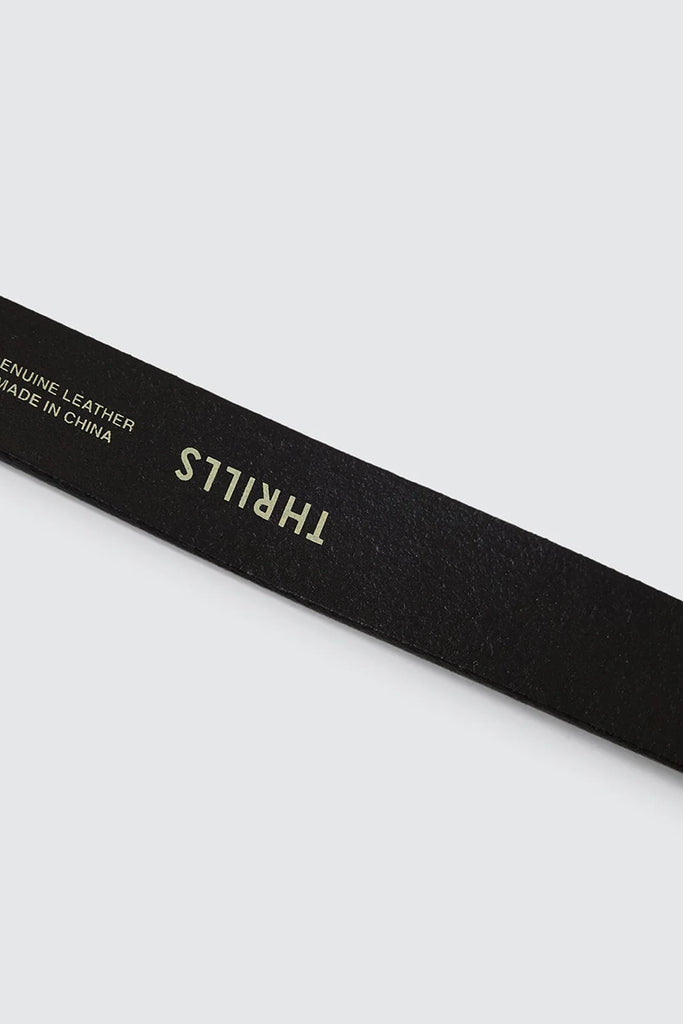Offering solid leather and edge, the Thrills Vintage Belt in Antique Black is a classic men's streetwear accessory. Crafted from 100% genuine leather and finished with a brushed gold buckle, it brings a subtle hit of old-school attitude, elevating casual fits with a timeless touch. Whether you're pairing it with denim jeans, men's chinos or workwear layers, this is perfect for rounding out your men's vintage belt collection.