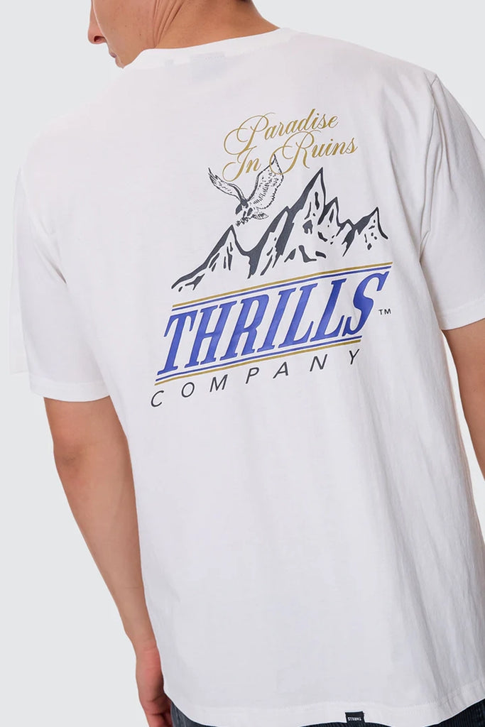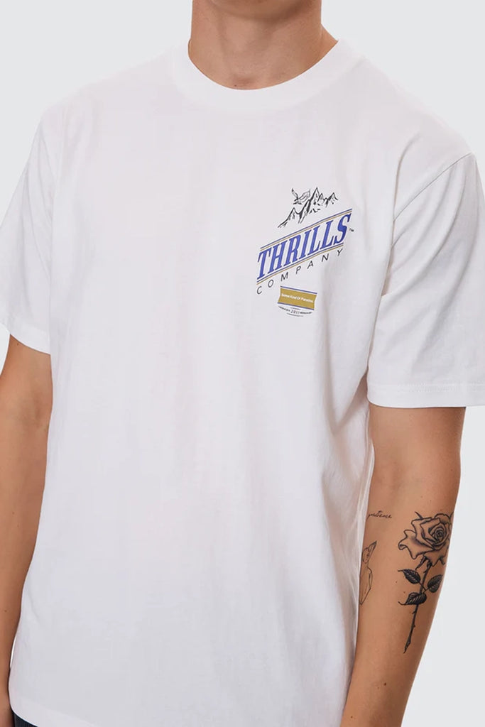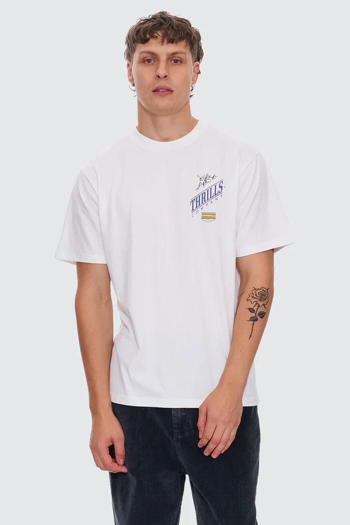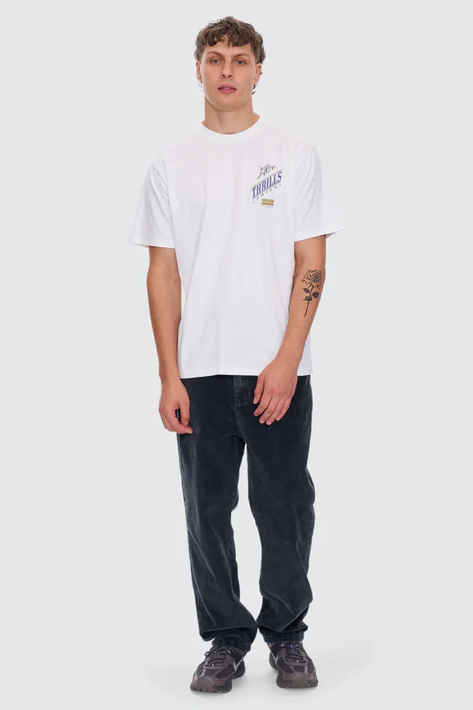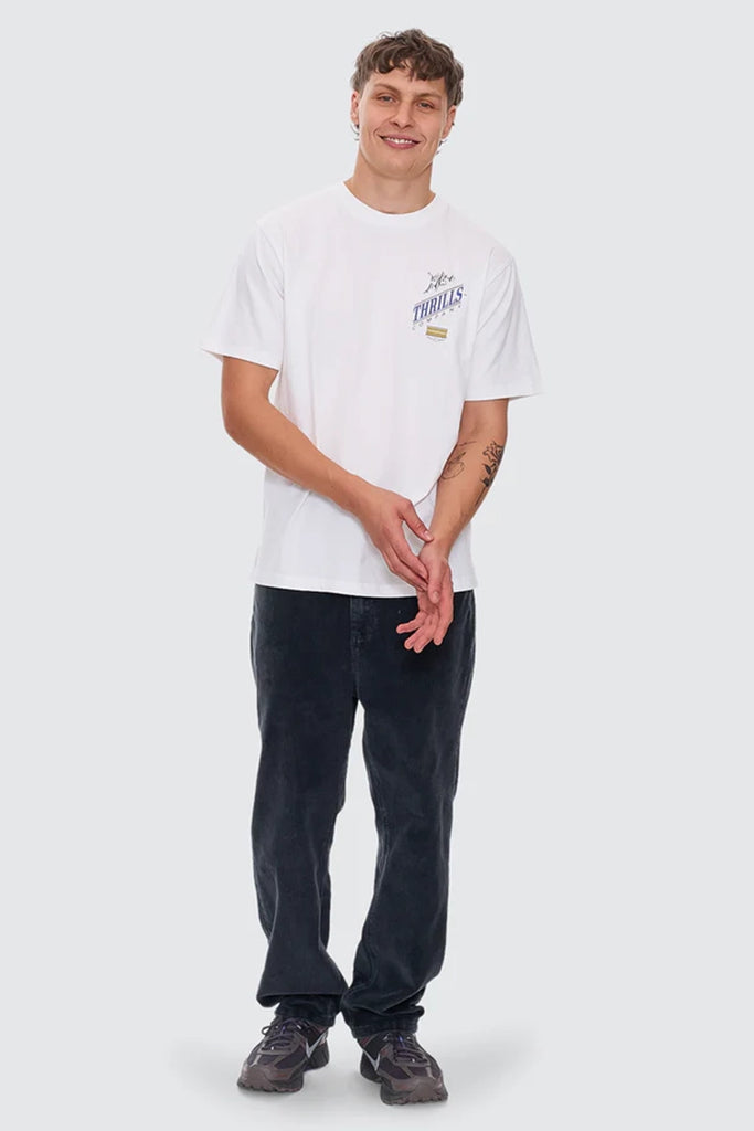 Your street style is a hit with the When It Hits Your Lips Merch Fit Tee in Dirty White. A fusion of vintage graphics and a loose, relaxed fit, this men's clothing staple is made from premium cotton jersey for a soft, lightweight and durable feel you can wear all day. Featuring a classic crew neckline, a clean, minimalist base and distinctive Thrills typography for a retro-inspired finish.