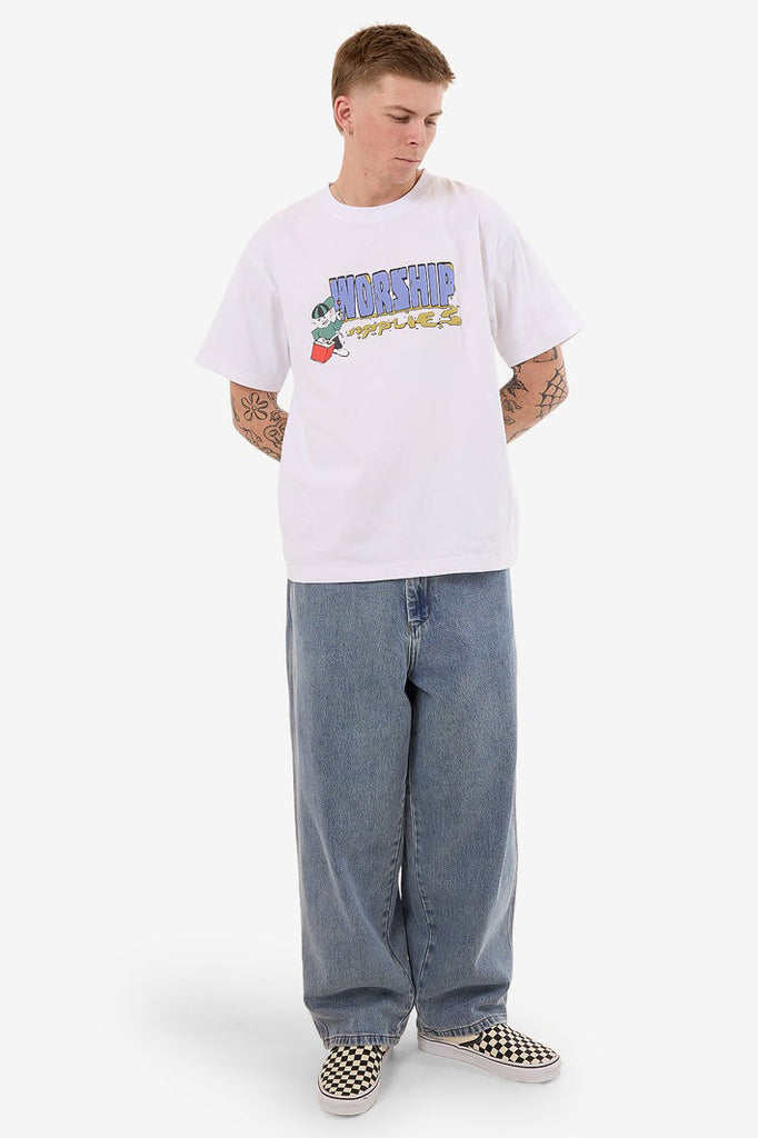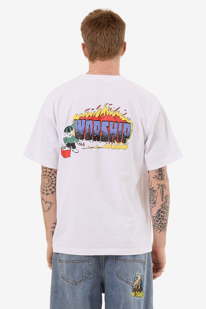 The Pyrotechnics Tee in White combines everyday comfort with standout graphics. Made from 245gsm cotton dry hand jersey, this men's tee offers a relaxed fit and a soft, breathable feel with a ribbed crewneck and a clean, laidback silhouette. Finished with bold, colourful puff-print graphics on the chest and back for a fun, edgy finish.