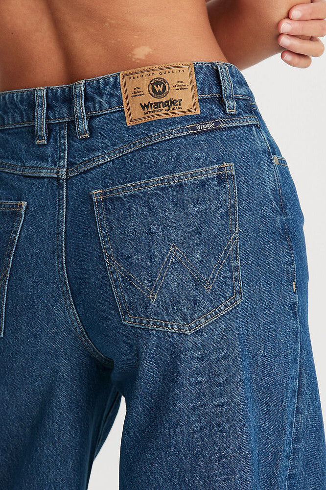 The Mid Stevie is the newest addition to out fit library. Designed to sit relaxed, and dropping to a dramatic wide leg silhouette the Mid Stevie stacks on your shoes for a true vintage flare look. Crafted in a mid indigo wash, in a soft non-stretch denim with an authentic vintage texture that gets more unique with every wash.