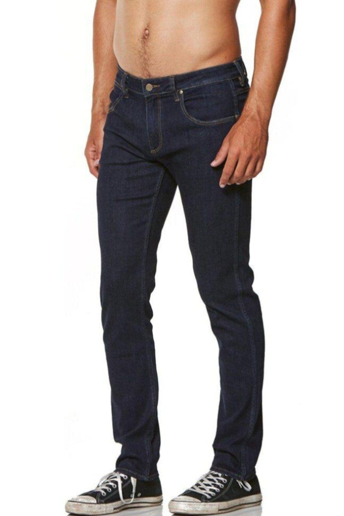 The Stomper is our slim, tapered fit. Low on the waist, slim through the seat and thigh and skinny from knee to hem.