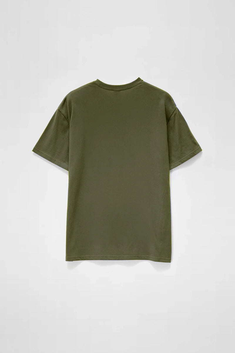 Shortsleeve crewneck tee in Olive is a custom box-fit, constructed from a combed cotton jersey.