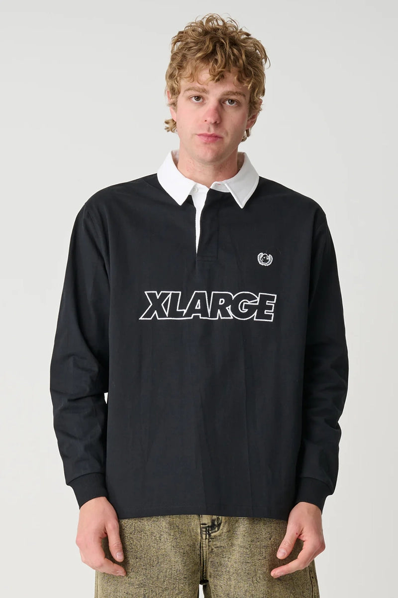 The XL Wreath Rugby Top in Black is a custom box fit polo, constructed from a heavyweight cotton jersey.